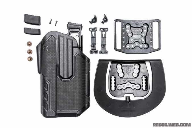 DUE POSSIBILITA’ DI AGGANCIARE L’ARMA ALLA CINTURA O CINTURONE CON CLASSICO PASSANTE O TRAMITE PADDLE